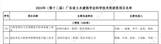 近日,广东省土木建筑学会正式揭晓了2024年(第十二届)广东省土木建筑学会科学技术奖的获奖名单,立博·官方(中国)集团两项科技成果荣获科学技术奖三等奖。这两项获奖成果分别为《超高单层大跨度网架整体提升施工技术》与《大跨度预应力无梁楼盖早拆体系施工技术》。针对房建项目施工过程中频发的问题进行了技术研发,并取得了良好的经济和社会效益。经过广东省建筑业协会科技成果评价会的严格评审与专家评议,这两项成果分别被认定为国内领先和国内先进水平。