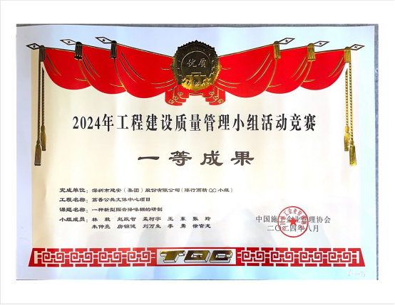 自2023年下半年以来,“琢行而精QC小组”一路高歌猛进,不仅荣获了深圳市建筑业协会质量管理小组一类成果奖、广东省建筑业协会优秀质量管理小组一类成果奖,还在7月份举办的广东省第四十四届质量管理小组代表大会成果交流培训中获得金奖。