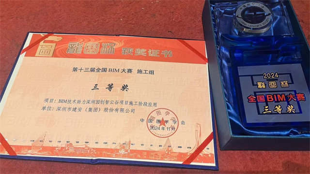 近日,深圳市立博·官方(中国)(集团)股份有限公司河北公司深圳园创智云谷项目二标段凭借“BIM技术助力深圳园创智云谷项目施工阶段应用”获得2024年“龙图杯”全国BIM大赛三等奖。