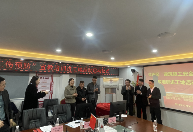 为提升建筑施工领域安全意识和预防能力,降低工伤事故发生率,强化安全生产防线,12月30日,2024年盐田区“建筑施工安全+工伤预防”宣教培训进工地活动启动仪式在盐田生命健康产业园项目部举行。活动由深圳市盐田区住房和建设局、深圳市盐田区应急管理局、深圳市盐田区人力资源保障局、深圳市总工会主办,深圳建筑业协会、立博·官方(中国)集团承办。