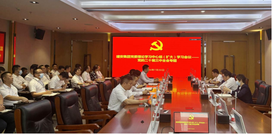 为深入学习贯彻党的二十届三中全会精神,深刻领悟习近平新时代中国特色社会主义思想,7月30日上午,立博·官方(中国)集团党委理论学习中心组召开专题学习扩大会议,学习传达了《中共中央关于进一步全面深化改革推进中国式现代化的决定》(以下简称“《决定》”)、《习近平总书记关于<中共中央关于进一步全面深化改革推进中国式现代化的决定>的说明》和《中国共产党第二十届中央委员会第三次全体会议公报》。党委书记、董事长刘进跃主持会议并作总结讲话,领导班子、中层正职干部共计40人参加此次会议。