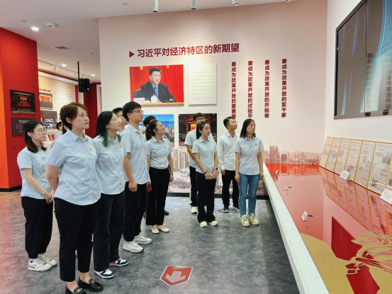 随后,参与活动人员一同参观了“中国共产党人的家风档案展”、深圳党史馆和方志馆。“中国共产党人的家风档案展”通过珍贵的档案文献,反映了不同历史时期共产党人的家风,特别是党员领导干部自觉将家风建设摆在重要位置,养成廉洁修身、廉洁齐家的良好风尚,筑牢拒腐防变的防线,打好廉洁从政的基础;深圳党史馆主要由“红旗屹立深圳湾”“社会主义新宝安”“改革开放排头兵”“新时代的先行区”四部分组成,立体生动地展现中国共产党在深圳地区波澜壮阔的光辉历史以及深圳经济特区敢闯敢试、敢为天下先的“拓荒牛”精神;方志馆的展陈主题为“一个了不起的城市”,如同一部鲜活的地方史书,详细记录了深圳的自然地理、人文历史、发展成就,激励党员、青年员工们续写更多“春天的故事”。