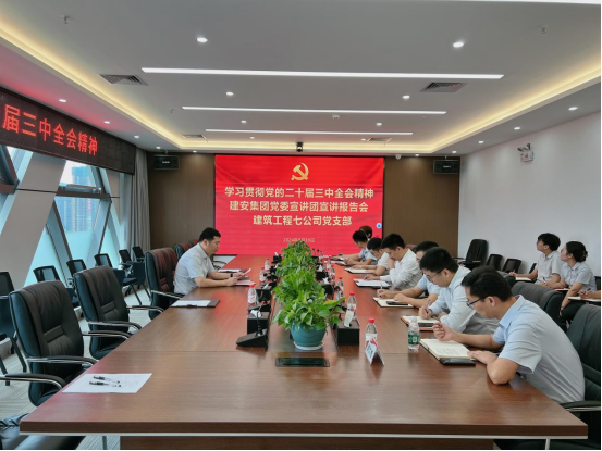 随后,付恩涛聚焦“全会最重要成果”“新时代全面深改重大成就、进一步全面深化改革总目标和原则”“加强党的领导和深化党的建设制度改革”等六个关键点进行党的二十届三中全会精神宣讲,并结合工作实际提出四点希望:一是要坚持党建引领,加强党的全面领导,为集团改革提供坚强保证。扎实抓好全会精神的学习宣传贯彻,精心组织多形式、分层次、全覆盖的培训,扎实推进基层党组织建设强基工程,以高质量党建引领企业高质量发展。二是要提高政治站位,聚焦中心工作,着力提升核心竞争力。持续发扬敢闯敢试、敢为人先、埋头苦干的特区精神,勇当新时代的“拓荒牛”,深耕施工生产一线,严抓履约管理,严格把关工程质量,严守安全防控底线,严控各类风险隐患相互交织叠加。三是要完善意识形态工作机制,做好意识形态工作。推动党员干部职工理想信念教育常态化,开展好党员群众的谈心谈话工作,及时了解员工思想动态,全面加强思想建设,充分发挥思想政治引领的作用。四是要扛牢信访维稳政治责任,把安全稳定作为重要的政治任务来抓。密切关注竣工收尾项目的维稳情况,深入开展排查工作,准确掌握风险隐患底数,积极与集团联动,形成工作合力,及时快速做好信访舆情处置工作,防止事态升级蔓延。希望一线党员要以身作则、廉洁自律、提高认识、齐心协力,确保建筑工程七公司年度各项指标顺利完成。