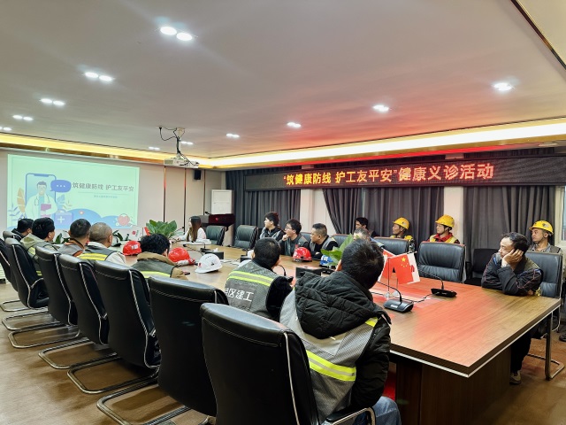 建筑工程六公司党支部邀请广东省中医学研究院在景云上辰花园项目部开展了为期一周的“筑健康防线,护工友平安”义诊活动。医护人员为工友提供血压血糖检测、心电图筛查、职业病防治咨询及慢性病用药指导等多项服务,针对建筑行业高发的腰肌劳损、关节疼痛等问题,现场进行推拿、针灸等中医理疗,并手把手教学简易保健操,帮助工友们缓解疲劳、掌握日常保健技巧。