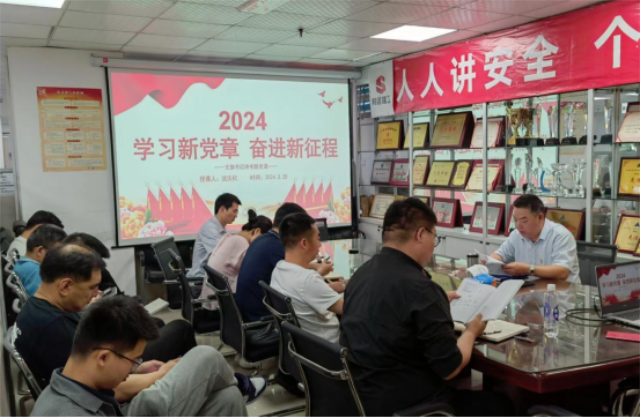 2024年3月25日,机电安装工程公司党支部召开党员大会。支部书记沈庆杭以《学习新党章 奋进新征程》为题,为全体党员上了一堂生动的党课。